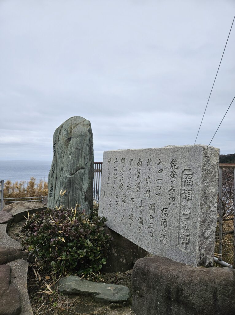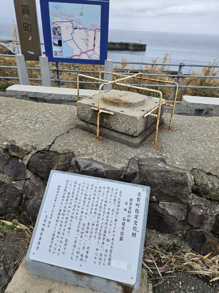 かつて北前船で栄えていた頃の歌の石碑や、1800年代に寄贈されたという方角石を見ることができます。