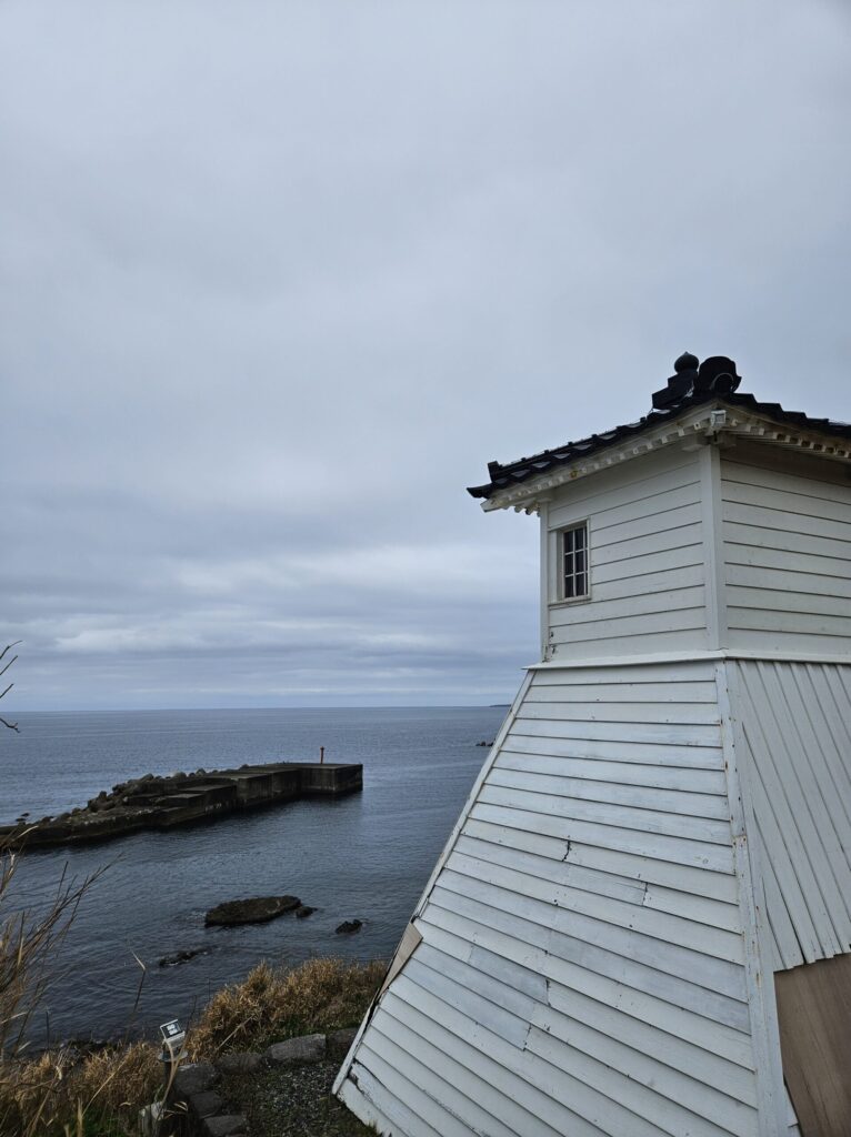 目の前には、凛と立つ白い灯台と、日本海が広がっていました。